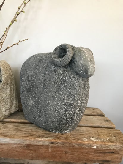Dit schaap van Polystone kan binnen en buiten geplaatst worden.
