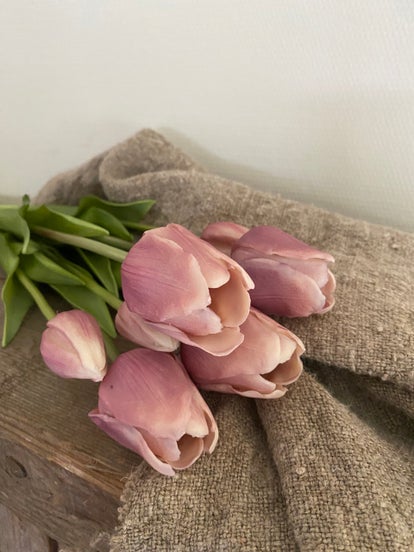 Gemengd bosje tulpen, Mauve, paars, vintage pink en purple grey.