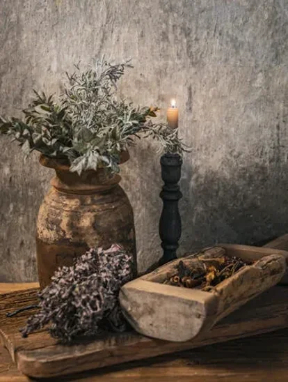 Wanddoeken komen aan beide zijde ruwe stoere donkere latten, soms met een noest.