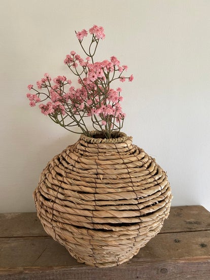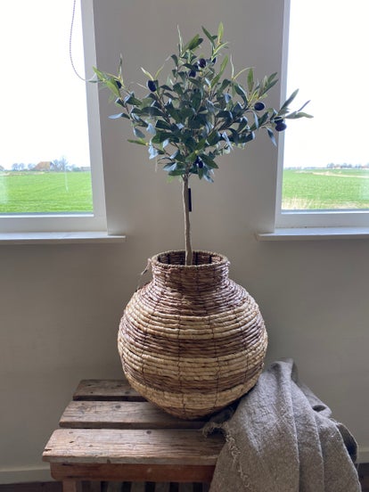 De Vaas is eerst opgevuld met papier zodat het boompje hoger in de vaas komt te staan